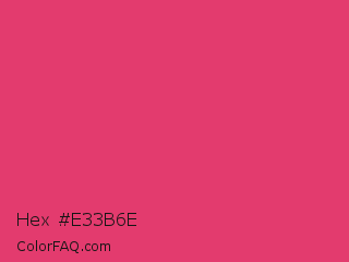 Hex #e33b6e Color is a normal rose color and the nearest color is Paradise Pink #e63e62. Hex code #e33b6e and RGB value is rgb(227,59,110). In RGB color space, this color is composed of 89% red, 23% green, 43% blue, In CMYK color space, this color is composed of 0% cyan, 74% magenta, 52% yellow , 11% black , In HSL color space, this color has a hue angle of 342° , 75% saturation and 56% lightness.