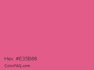 Hex #e35b88 Color is a light rose color and the nearest color is Blush #de5d83. Hex code #e35b88 and RGB value is rgb(227,91,136). In RGB color space, this color is composed of 89% red, 36% green, 53% blue, In CMYK color space, this color is composed of 0% cyan, 60% magenta, 40% yellow , 11% black , In HSL color space, this color has a hue angle of 340° , 71% saturation and 62% lightness.