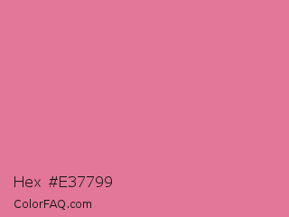 Hex #e37799 Color is a light rose color and the nearest color is Bright Blush #e47698. Hex code #e37799 and RGB value is rgb(227,119,153). In RGB color space, this color is composed of 89% red, 47% green, 60% blue, In CMYK color space, this color is composed of 0% cyan, 48% magenta, 33% yellow , 11% black , In HSL color space, this color has a hue angle of 341° , 66% saturation and 68% lightness.
