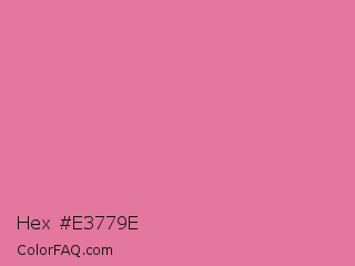 Hex #e3779e Color is a light rose color and the nearest color is Bright Blush #e47698. Hex code #e3779e and RGB value is rgb(227,119,158). In RGB color space, this color is composed of 89% red, 47% green, 62% blue, In CMYK color space, this color is composed of 0% cyan, 48% magenta, 30% yellow , 11% black , In HSL color space, this color has a hue angle of 338° , 66% saturation and 68% lightness.