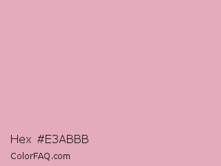 Hex #e3abbb Color is a light rose color and the nearest color is Blossom #dcb4bc. Hex code #e3abbb and RGB value is rgb(227,171,187). In RGB color space, this color is composed of 89% red, 67% green, 73% blue, In CMYK color space, this color is composed of 0% cyan, 25% magenta, 18% yellow , 11% black , In HSL color space, this color has a hue angle of 343° , 50% saturation and 78% lightness.