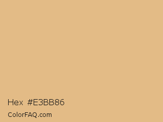 Hex #e3bb86 Color is a light orange color and the nearest color is Gold Sand #e6be8a. Hex code #e3bb86 and RGB value is rgb(227,187,134). In RGB color space, this color is composed of 89% red, 73% green, 53% blue, In CMYK color space, this color is composed of 0% cyan, 18% magenta, 41% yellow , 11% black , In HSL color space, this color has a hue angle of 34° , 62% saturation and 71% lightness.