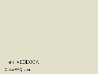 Hex #e3e0ca Color is a very light yellow color and the nearest color is Bone #e3dac9. Hex code #e3e0ca and RGB value is rgb(227,224,202). In RGB color space, this color is composed of 89% red, 88% green, 79% blue, In CMYK color space, this color is composed of 0% cyan, 1% magenta, 11% yellow , 11% black , In HSL color space, this color has a hue angle of 53° , 31% saturation and 84% lightness.