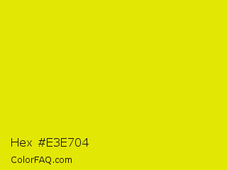 Hex #e3e704 Color is a normal yellow color and the nearest color is Peridot #e6e200. Hex code #e3e704 and RGB value is rgb(227,231,4). In RGB color space, this color is composed of 89% red, 91% green, 2% blue, In CMYK color space, this color is composed of 2% cyan, 0% magenta, 98% yellow , 9% black , In HSL color space, this color has a hue angle of 61° , 97% saturation and 46% lightness.