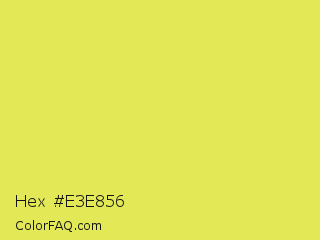 Hex #e3e856 Color is a light yellow color and the nearest color is Maximum Green Yellow #d9e650. Hex code #e3e856 and RGB value is rgb(227,232,86). In RGB color space, this color is composed of 89% red, 91% green, 34% blue, In CMYK color space, this color is composed of 2% cyan, 0% magenta, 63% yellow , 9% black , In HSL color space, this color has a hue angle of 62° , 76% saturation and 62% lightness.
