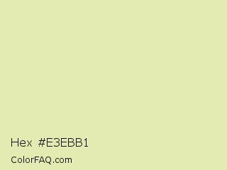 Hex #e3ebb1 Color is a very light yellow color and the nearest color is Caper #dcedb4. Hex code #e3ebb1 and RGB value is rgb(227,235,177). In RGB color space, this color is composed of 89% red, 92% green, 69% blue, In CMYK color space, this color is composed of 3% cyan, 0% magenta, 25% yellow , 8% black , In HSL color space, this color has a hue angle of 68° , 59% saturation and 81% lightness.
