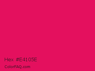 Hex #e4105e Color is a normal rose color and the nearest color is Ruby #e0115f. Hex code #e4105e and RGB value is rgb(228,16,94). In RGB color space, this color is composed of 89% red, 6% green, 37% blue, In CMYK color space, this color is composed of 0% cyan, 93% magenta, 59% yellow , 11% black , In HSL color space, this color has a hue angle of 338° , 87% saturation and 48% lightness.