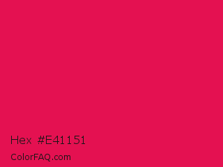 Hex #e41151 Color is a normal rose color and the nearest color is Spanish Crimson #e51a4c. Hex code #e41151 and RGB value is rgb(228,17,81). In RGB color space, this color is composed of 89% red, 7% green, 32% blue, In CMYK color space, this color is composed of 0% cyan, 93% magenta, 64% yellow , 11% black , In HSL color space, this color has a hue angle of 342° , 86% saturation and 48% lightness.