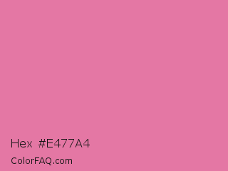 Hex #e477a4 Color is a light rose color and the nearest color is Thulian Pink #de6fa1. Hex code #e477a4 and RGB value is rgb(228,119,164). In RGB color space, this color is composed of 89% red, 47% green, 64% blue, In CMYK color space, this color is composed of 0% cyan, 48% magenta, 28% yellow , 11% black , In HSL color space, this color has a hue angle of 335° , 67% saturation and 68% lightness.