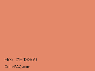 Hex #e48869 Color is a light color and the nearest color is Copperfield #da8a67. Hex code #e48869 and RGB value is rgb(228,136,105). In RGB color space, this color is composed of 89% red, 53% green, 41% blue, In CMYK color space, this color is composed of 0% cyan, 40% magenta, 54% yellow , 11% black , In HSL color space, this color has a hue angle of 15° , 69% saturation and 65% lightness.