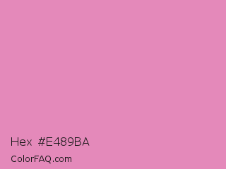 Hex #e489ba Color is a light rose color and the nearest color is Shocking #e292c0. Hex code #e489ba and RGB value is rgb(228,137,186). In RGB color space, this color is composed of 89% red, 54% green, 73% blue, In CMYK color space, this color is composed of 0% cyan, 40% magenta, 18% yellow , 11% black , In HSL color space, this color has a hue angle of 328° , 63% saturation and 72% lightness.
