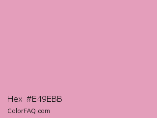Hex #e49ebb Color is a light rose color and the nearest color is Kobi #e79fc4. Hex code #e49ebb and RGB value is rgb(228,158,187). In RGB color space, this color is composed of 89% red, 62% green, 73% blue, In CMYK color space, this color is composed of 0% cyan, 31% magenta, 18% yellow , 11% black , In HSL color space, this color has a hue angle of 335° , 56% saturation and 76% lightness.