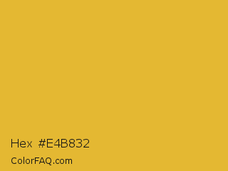 Hex #e4b832 Color is a normal orange color and the nearest color is Meat Brown #e5b73b. Hex code #e4b832 and RGB value is rgb(228,184,50). In RGB color space, this color is composed of 89% red, 72% green, 20% blue, In CMYK color space, this color is composed of 0% cyan, 19% magenta, 78% yellow , 11% black , In HSL color space, this color has a hue angle of 45° , 77% saturation and 55% lightness.