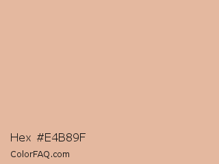 Hex #e4b89f Color is a light orange color and the nearest color is Cashmere #e6bea5. Hex code #e4b89f and RGB value is rgb(228,184,159). In RGB color space, this color is composed of 89% red, 72% green, 62% blue, In CMYK color space, this color is composed of 0% cyan, 19% magenta, 30% yellow , 11% black , In HSL color space, this color has a hue angle of 22° , 56% saturation and 76% lightness.