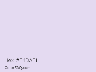 Hex #e4daf1 Color is a very light violet color and the nearest color is Snuff #e2d8ed. Hex code #e4daf1 and RGB value is rgb(228,218,241). In RGB color space, this color is composed of 89% red, 85% green, 95% blue, In CMYK color space, this color is composed of 5% cyan, 10% magenta, 0% yellow , 5% black , In HSL color space, this color has a hue angle of 266° , 45% saturation and 90% lightness.