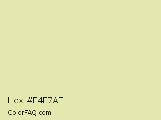 Hex #e4e7ae Color is a light yellow color and the nearest color is Double Colonial White #eee3ad. Hex code #e4e7ae and RGB value is rgb(228,231,174). In RGB color space, this color is composed of 89% red, 91% green, 68% blue, In CMYK color space, this color is composed of 1% cyan, 0% magenta, 25% yellow , 9% black , In HSL color space, this color has a hue angle of 63° , 54% saturation and 79% lightness.