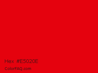 Hex #e5020e Color is a normal red color and the nearest color is KU Crimson #e8000d. Hex code #e5020e and RGB value is rgb(229,2,14). In RGB color space, this color is composed of 90% red, 1% green, 5% blue, In CMYK color space, this color is composed of 0% cyan, 99% magenta, 94% yellow , 10% black , In HSL color space, this color has a hue angle of 357° , 98% saturation and 45% lightness.