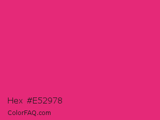 Hex #e52978 Color is a normal rose color and the nearest color is Razzmatazz #e3256b. Hex code #e52978 and RGB value is rgb(229,41,120). In RGB color space, this color is composed of 90% red, 16% green, 47% blue, In CMYK color space, this color is composed of 0% cyan, 82% magenta, 48% yellow , 10% black , In HSL color space, this color has a hue angle of 335° , 78% saturation and 53% lightness.