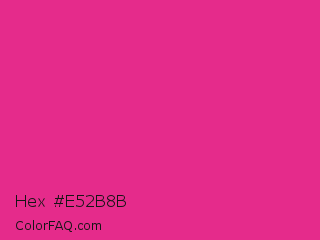 Hex #e52b8b Color is a normal rose color and the nearest color is Barbie Pink #e0218a. Hex code #e52b8b and RGB value is rgb(229,43,139). In RGB color space, this color is composed of 90% red, 17% green, 55% blue, In CMYK color space, this color is composed of 0% cyan, 81% magenta, 39% yellow , 10% black , In HSL color space, this color has a hue angle of 329° , 78% saturation and 53% lightness.