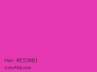 Hex #e538b1 Color is a normal magenta color and the nearest color is Frostbite #e936a7. Hex code #e538b1 and RGB value is rgb(229,56,177). In RGB color space, this color is composed of 90% red, 22% green, 69% blue, In CMYK color space, this color is composed of 0% cyan, 76% magenta, 23% yellow , 10% black , In HSL color space, this color has a hue angle of 318° , 77% saturation and 56% lightness.