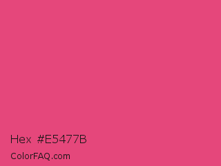 Hex #e5477b Color is a normal rose color and the nearest color is Cranberry #db5079. Hex code #e5477b and RGB value is rgb(229,71,123). In RGB color space, this color is composed of 90% red, 28% green, 48% blue, In CMYK color space, this color is composed of 0% cyan, 69% magenta, 46% yellow , 10% black , In HSL color space, this color has a hue angle of 340° , 75% saturation and 59% lightness.