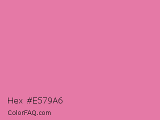 Hex #e579a6 Color is a light rose color and the nearest color is Thulian Pink #de6fa1. Hex code #e579a6 and RGB value is rgb(229,121,166). In RGB color space, this color is composed of 90% red, 47% green, 65% blue, In CMYK color space, this color is composed of 0% cyan, 47% magenta, 28% yellow , 10% black , In HSL color space, this color has a hue angle of 335° , 68% saturation and 69% lightness.