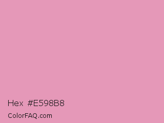 Hex #e598b8 Color is a light rose color and the nearest color is Shocking #e292c0. Hex code #e598b8 and RGB value is rgb(229,152,184). In RGB color space, this color is composed of 90% red, 60% green, 72% blue, In CMYK color space, this color is composed of 0% cyan, 34% magenta, 20% yellow , 10% black , In HSL color space, this color has a hue angle of 335° , 60% saturation and 75% lightness.