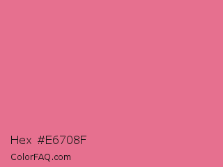 Hex #e6708f Color is a light rose color and the nearest color is Bright Blush #e47698. Hex code #e6708f and RGB value is rgb(230,112,143). In RGB color space, this color is composed of 90% red, 44% green, 56% blue, In CMYK color space, this color is composed of 0% cyan, 51% magenta, 38% yellow , 10% black , In HSL color space, this color has a hue angle of 344° , 70% saturation and 67% lightness.