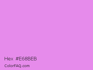 Hex #e68beb Color is a light magenta color and the nearest color is Lavender Magenta #ee82ee. Hex code #e68beb and RGB value is rgb(230,139,235). In RGB color space, this color is composed of 90% red, 55% green, 92% blue, In CMYK color space, this color is composed of 2% cyan, 41% magenta, 0% yellow , 8% black , In HSL color space, this color has a hue angle of 297° , 71% saturation and 73% lightness.