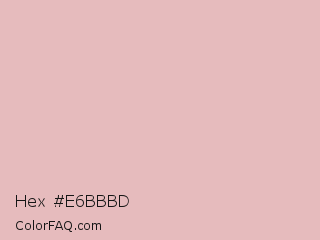 Hex #e6bbbd Color is a very light red color and the nearest color is Cavern Pink #e3bebe. Hex code #e6bbbd and RGB value is rgb(230,187,189). In RGB color space, this color is composed of 90% red, 73% green, 74% blue, In CMYK color space, this color is composed of 0% cyan, 19% magenta, 18% yellow , 10% black , In HSL color space, this color has a hue angle of 357° , 46% saturation and 82% lightness.