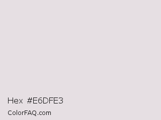 Hex #e6dfe3 Color is a very light magenta color and the nearest color is Bon Jour #e5e0e1. Hex code #e6dfe3 and RGB value is rgb(230,223,227). In RGB color space, this color is composed of 90% red, 87% green, 89% blue, In CMYK color space, this color is composed of 0% cyan, 3% magenta, 1% yellow , 10% black , In HSL color space, this color has a hue angle of 326° , 12% saturation and 89% lightness.