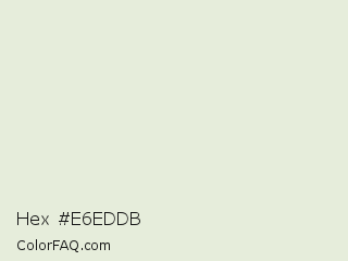 Hex #e6eddb Color is a very light green color and the nearest color is Green White #e8ebe0. Hex code #e6eddb and RGB value is rgb(230,237,219). In RGB color space, this color is composed of 90% red, 93% green, 86% blue, In CMYK color space, this color is composed of 3% cyan, 0% magenta, 8% yellow , 7% black , In HSL color space, this color has a hue angle of 83° , 33% saturation and 89% lightness.