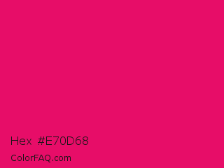 Hex #e70d68 Color is a normal rose color and the nearest color is Raspberry #e30b5d. Hex code #e70d68 and RGB value is rgb(231,13,104). In RGB color space, this color is composed of 91% red, 5% green, 41% blue, In CMYK color space, this color is composed of 0% cyan, 94% magenta, 55% yellow , 9% black , In HSL color space, this color has a hue angle of 335° , 89% saturation and 48% lightness.