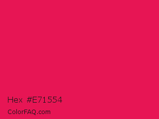 Hex #e71554 Color is a normal rose color and the nearest color is Spanish Crimson #e51a4c. Hex code #e71554 and RGB value is rgb(231,21,84). In RGB color space, this color is composed of 91% red, 8% green, 33% blue, In CMYK color space, this color is composed of 0% cyan, 91% magenta, 64% yellow , 9% black , In HSL color space, this color has a hue angle of 342° , 83% saturation and 49% lightness.