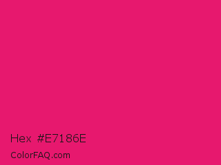 Hex #e7186e Color is a normal rose color and the nearest color is Razzmatazz #e3256b. Hex code #e7186e and RGB value is rgb(231,24,110). In RGB color space, this color is composed of 91% red, 9% green, 43% blue, In CMYK color space, this color is composed of 0% cyan, 90% magenta, 52% yellow , 9% black , In HSL color space, this color has a hue angle of 335° , 81% saturation and 50% lightness.