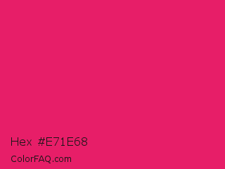 Hex #e71e68 Color is a normal rose color and the nearest color is Razzmatazz #e3256b. Hex code #e71e68 and RGB value is rgb(231,30,104). In RGB color space, this color is composed of 91% red, 12% green, 41% blue, In CMYK color space, this color is composed of 0% cyan, 87% magenta, 55% yellow , 9% black , In HSL color space, this color has a hue angle of 338° , 81% saturation and 51% lightness.