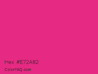 Hex #e72a82 Color is a normal rose color and the nearest color is Barbie Pink #e0218a. Hex code #e72a82 and RGB value is rgb(231,42,130). In RGB color space, this color is composed of 91% red, 16% green, 51% blue, In CMYK color space, this color is composed of 0% cyan, 82% magenta, 44% yellow , 9% black , In HSL color space, this color has a hue angle of 332° , 80% saturation and 54% lightness.