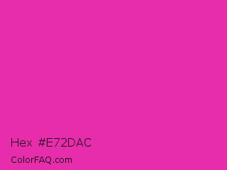 Hex #e72dac Color is a normal magenta color and the nearest color is Frostbite #e936a7. Hex code #e72dac and RGB value is rgb(231,45,172). In RGB color space, this color is composed of 91% red, 18% green, 67% blue, In CMYK color space, this color is composed of 0% cyan, 81% magenta, 26% yellow , 9% black , In HSL color space, this color has a hue angle of 319° , 79% saturation and 54% lightness.