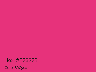 Hex #e7327b Color is a normal rose color and the nearest color is Cerise Pink #ec3b83. Hex code #e7327b and RGB value is rgb(231,50,123). In RGB color space, this color is composed of 91% red, 20% green, 48% blue, In CMYK color space, this color is composed of 0% cyan, 78% magenta, 47% yellow , 9% black , In HSL color space, this color has a hue angle of 336° , 79% saturation and 55% lightness.