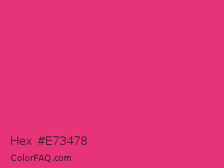 Hex #e73478 Color is a normal rose color and the nearest color is Cerise Pink #ec3b83. Hex code #e73478 and RGB value is rgb(231,52,120). In RGB color space, this color is composed of 91% red, 20% green, 47% blue, In CMYK color space, this color is composed of 0% cyan, 77% magenta, 48% yellow , 9% black , In HSL color space, this color has a hue angle of 337° , 79% saturation and 55% lightness.