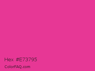 Hex #e73795 Color is a normal rose color and the nearest color is Frostbite #e936a7. Hex code #e73795 and RGB value is rgb(231,55,149). In RGB color space, this color is composed of 91% red, 22% green, 58% blue, In CMYK color space, this color is composed of 0% cyan, 76% magenta, 35% yellow , 9% black , In HSL color space, this color has a hue angle of 328° , 79% saturation and 56% lightness.
