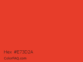 Hex #e73d2a Color is a normal red color and the nearest color is CG Red #e03c31. Hex code #e73d2a and RGB value is rgb(231,61,42). In RGB color space, this color is composed of 91% red, 24% green, 16% blue, In CMYK color space, this color is composed of 0% cyan, 74% magenta, 82% yellow , 9% black , In HSL color space, this color has a hue angle of 6° , 80% saturation and 54% lightness.