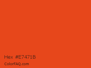 Hex #e7471b Color is a normal red color and the nearest color is Pomegranate #f34723. Hex code #e7471b and RGB value is rgb(231,71,27). In RGB color space, this color is composed of 91% red, 28% green, 11% blue, In CMYK color space, this color is composed of 0% cyan, 69% magenta, 88% yellow , 9% black , In HSL color space, this color has a hue angle of 13° , 81% saturation and 51% lightness.