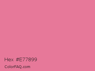 Hex #e77899 Color is a light rose color and the nearest color is Bright Blush #e47698. Hex code #e77899 and RGB value is rgb(231,120,153). In RGB color space, this color is composed of 91% red, 47% green, 60% blue, In CMYK color space, this color is composed of 0% cyan, 48% magenta, 34% yellow , 9% black , In HSL color space, this color has a hue angle of 342° , 70% saturation and 69% lightness.