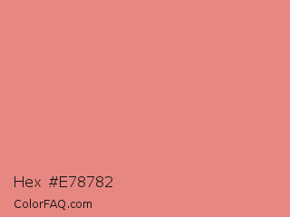 Hex #e78782 Color is a light red color and the nearest color is Light Coral #f08080. Hex code #e78782 and RGB value is rgb(231,135,130). In RGB color space, this color is composed of 91% red, 53% green, 51% blue, In CMYK color space, this color is composed of 0% cyan, 42% magenta, 44% yellow , 9% black , In HSL color space, this color has a hue angle of 3° , 68% saturation and 71% lightness.