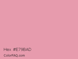 Hex #e79bad Color is a light red color and the nearest color is Mauvelous #ef98aa. Hex code #e79bad and RGB value is rgb(231,155,173). In RGB color space, this color is composed of 91% red, 61% green, 68% blue, In CMYK color space, this color is composed of 0% cyan, 33% magenta, 25% yellow , 9% black , In HSL color space, this color has a hue angle of 346° , 61% saturation and 76% lightness.