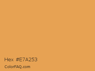 Hex #e7a253 Color is a light orange color and the nearest color is Indian Yellow #e3a857. Hex code #e7a253 and RGB value is rgb(231,162,83). In RGB color space, this color is composed of 91% red, 64% green, 33% blue, In CMYK color space, this color is composed of 0% cyan, 30% magenta, 64% yellow , 9% black , In HSL color space, this color has a hue angle of 32° , 76% saturation and 62% lightness.