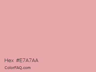 Hex #e7a7aa Color is a light red color and the nearest color is Pastel Pink #dea5a4. Hex code #e7a7aa and RGB value is rgb(231,167,170). In RGB color space, this color is composed of 91% red, 65% green, 67% blue, In CMYK color space, this color is composed of 0% cyan, 28% magenta, 26% yellow , 9% black , In HSL color space, this color has a hue angle of 357° , 57% saturation and 78% lightness.