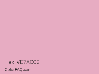 Hex #e7acc2 Color is a light rose color and the nearest color is Pink Pearl #e7accf. Hex code #e7acc2 and RGB value is rgb(231,172,194). In RGB color space, this color is composed of 91% red, 67% green, 76% blue, In CMYK color space, this color is composed of 0% cyan, 26% magenta, 16% yellow , 9% black , In HSL color space, this color has a hue angle of 338° , 55% saturation and 79% lightness.