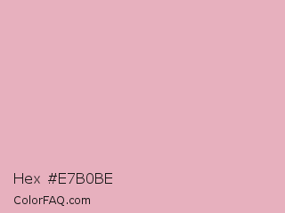 Hex #e7b0be Color is a light red color and the nearest color is Blossom #dcb4bc. Hex code #e7b0be and RGB value is rgb(231,176,190). In RGB color space, this color is composed of 91% red, 69% green, 75% blue, In CMYK color space, this color is composed of 0% cyan, 24% magenta, 18% yellow , 9% black , In HSL color space, this color has a hue angle of 345° , 53% saturation and 80% lightness.